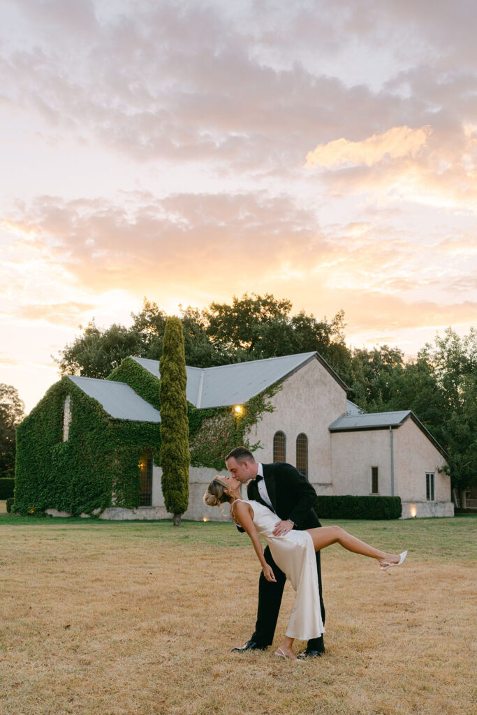 The approach worked beautifully with the natural character of the venue. The stone chapel, the gardens, and the vineyard views already carry so much atmosphere that a lighter touch with styling lets the setting shine.