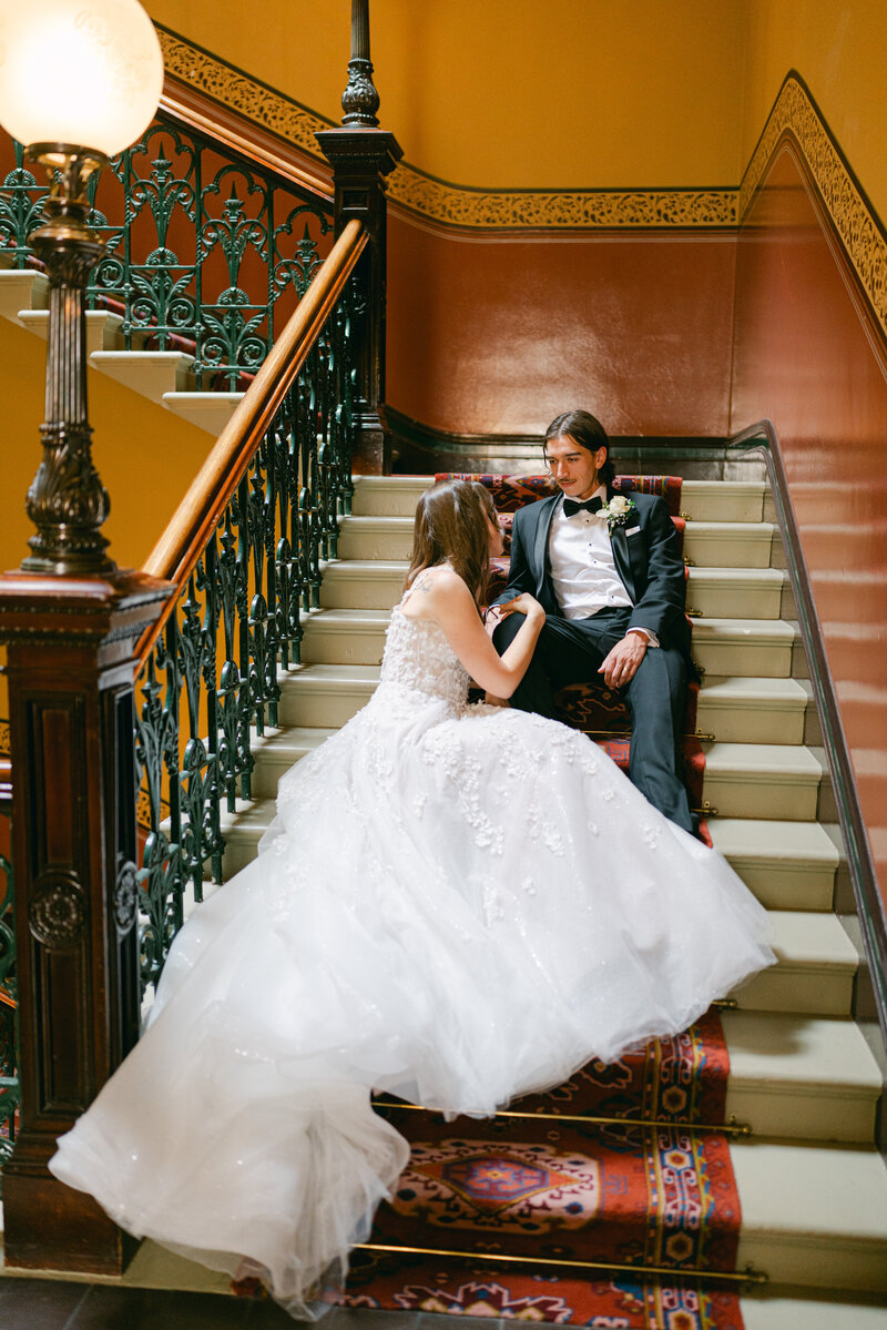 Their wedding photos were captured in the hotel as well as in the nearby vicinity at Melbourne's Parliament House. Ever the fun-loving type, their photos represent them completely: romantic and intimate but moments of Sam and his usual high-energy antics!